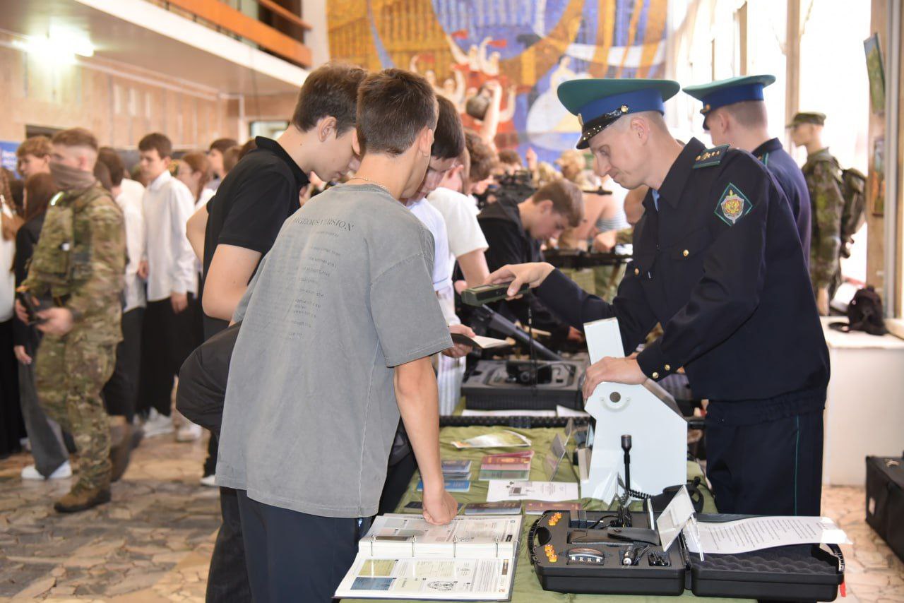 В фойе городского Дворца культуры была организована выставка, где можно было увидеть разнообразное вооружение, экипировку и технические средства, использующиеся пограничниками. Учащиеся старших классов, техникумов и колледжей с большим интересом изучали экспонаты, обсуждая их особенности и предназначение.