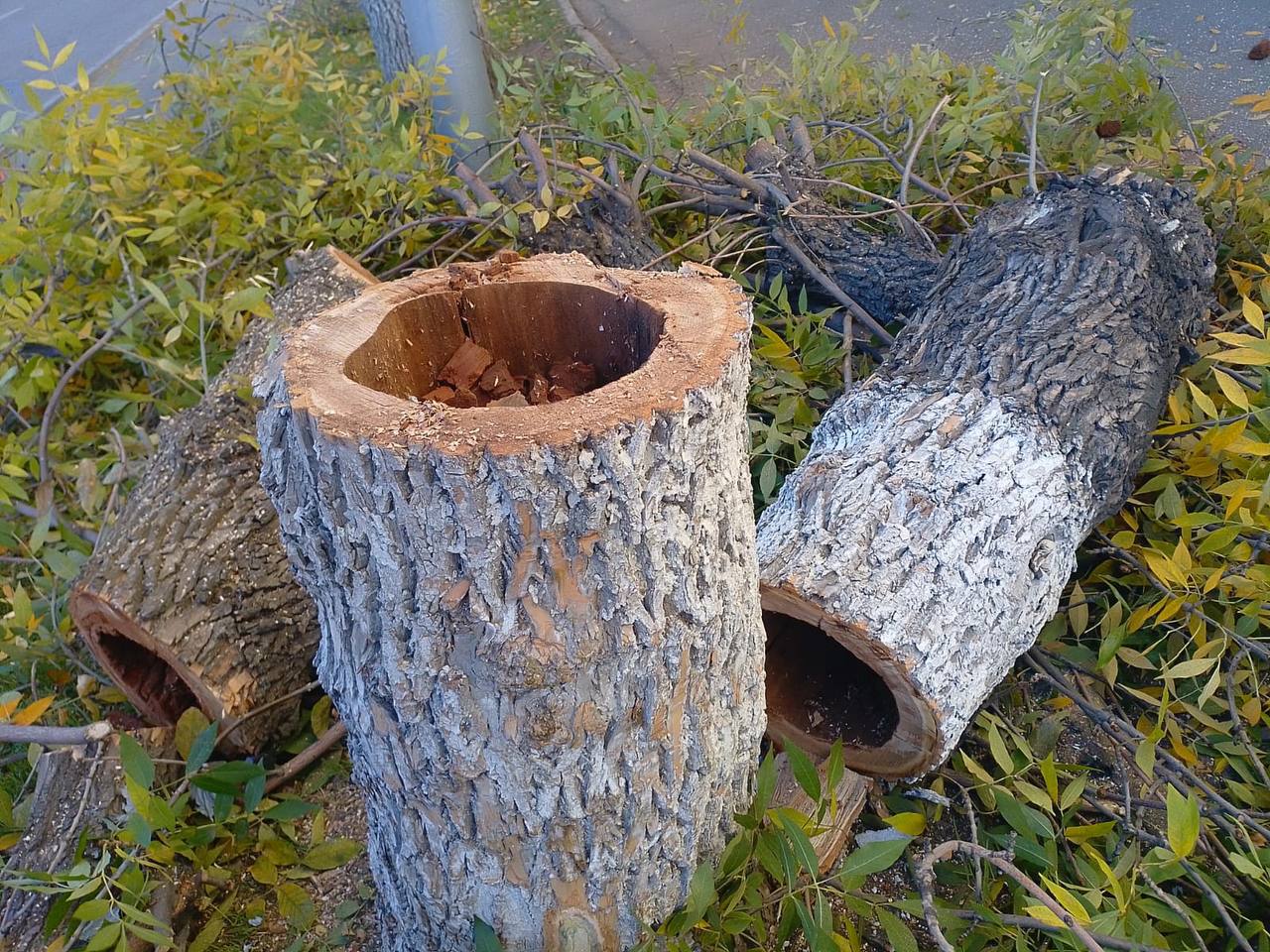 Решение о сносе каждого дерева принимается Зеленой комиссией. Удаляются исключительно аварийные деревья, представляющие угрозу для жизни и имущества жителей города. На фото - деревья, удаленные на минувшей неделе. Их состояние говорит само за себя. После удаления взамен этих деревьев будут высажены новые породы.