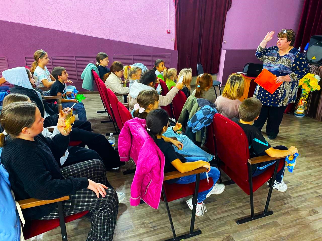 Перед началом сеанса состоялась беседа о характерных чертах осени, её приметах и дарах природы. Дети увлекательно делились наблюдениями об улетающих птицах и о том, как день становится короче, а ночь — длиннее.