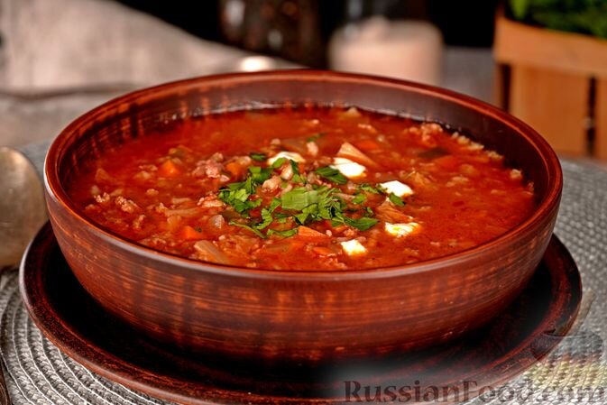 - Суп-голубец: Этот суп порадует любителей классического блюда. Сочетая мясной фарш, рис и пекинскую капусту, он напоминает любимые голубцы, но готовится гораздо быстрее. За счет томатного сока он приобретает насыщенный вкус.