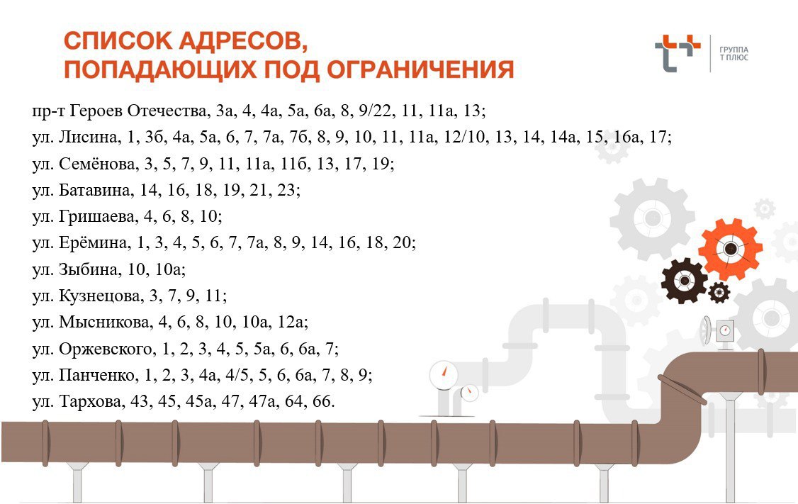 Сегодня, 14 октября, "Т Плюс" проведет неотложные ремонтные работы на теплосети для обеспечения надежного теплоснабжения зимой. Поэтому горячее водоснабжение в некоторых домах будет временно отключено.