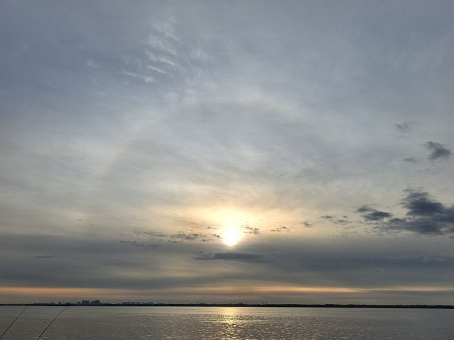 Утром 15 октября жители Саратова наблюдали солнечное гало - оптический эффект, при котором вокруг Солнца (или Луны) возникает светящееся кольцо. Явление заметили на набережной Саратова.