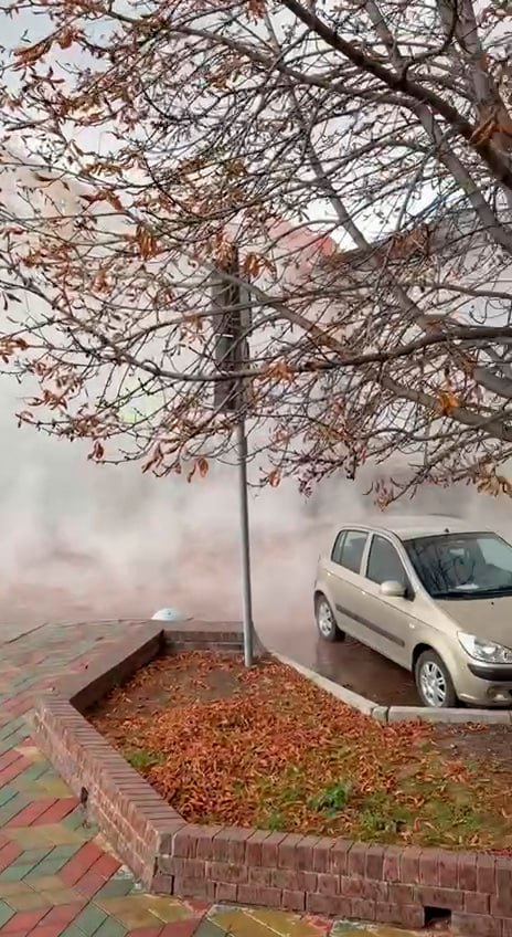 Все произошло на улице Железнодорожная, неподалеку от Кировского районного суда. Кипяток буквально затапливает улицу, а из-за температуры воды территорию заволокло паром. Некоторые машины увозят эвакуаторы, но остальные все еще находятся на месте парковки, пока под ними скапливается кипяток.