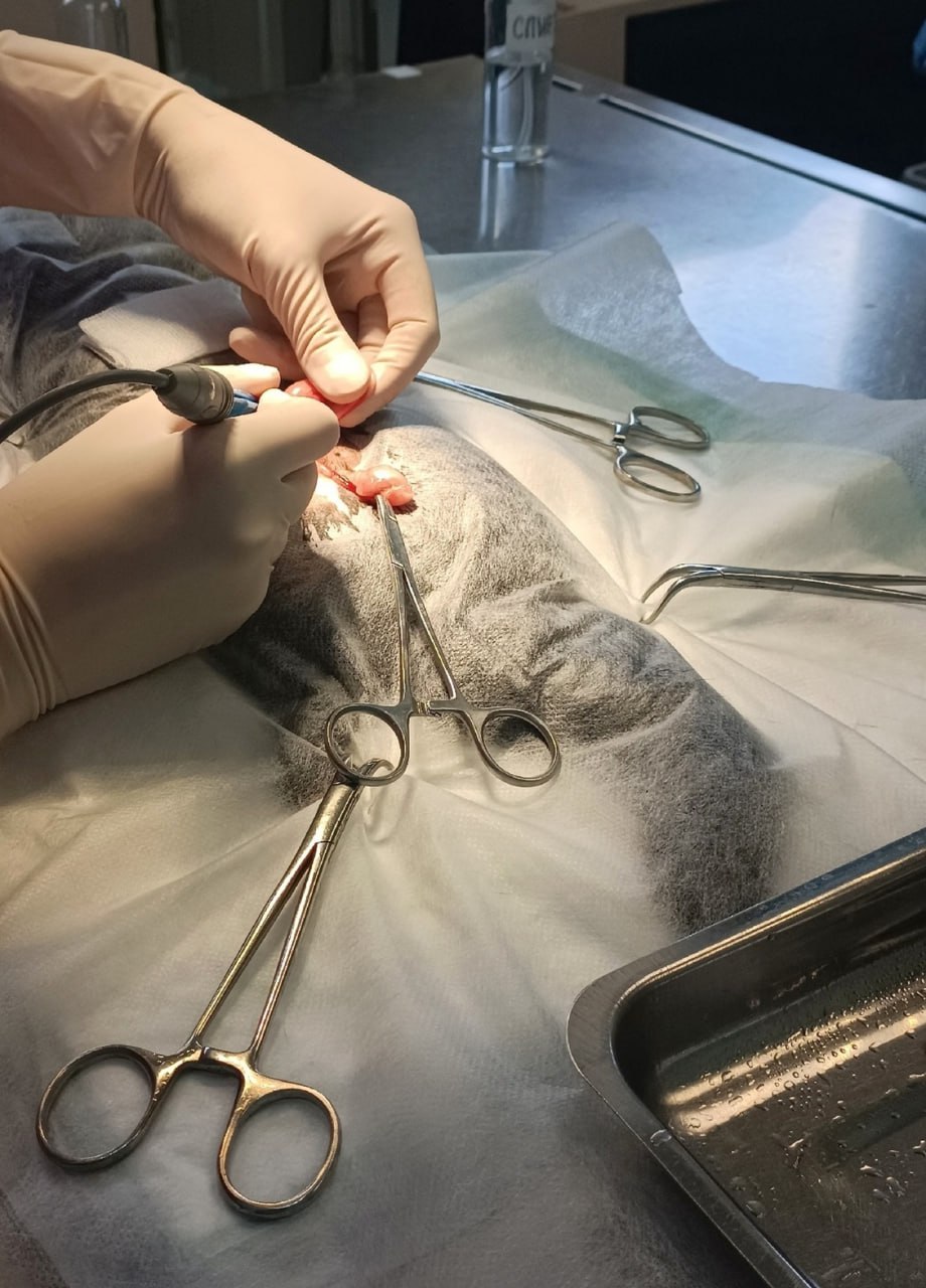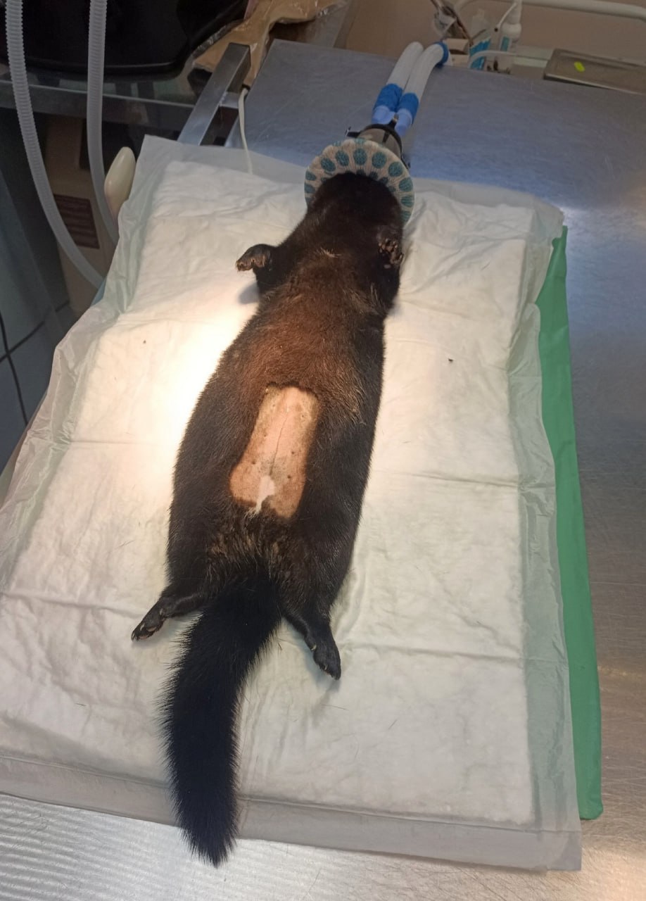 Для норки есть свои нюансы: небольшая масса, тонкая кожа, компактная анатомия — все это требует аккуратности. Швы внутрикожные, восстановление плановое, уже через несколько часов пациент был активен и подвижен, — отметили в клинике.