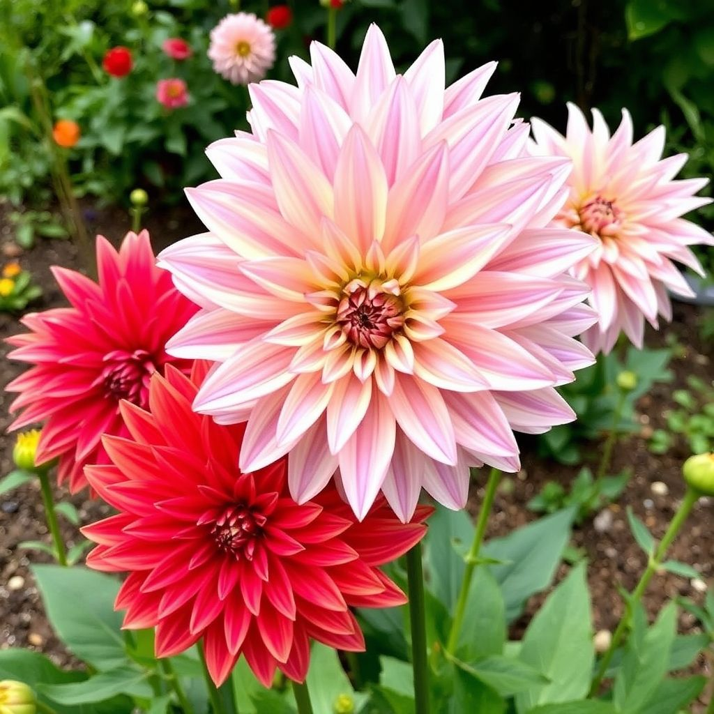 Существует множество сортов георгинов, от карликовых (30-50 см) до гигантских (120-180 см). Несмотря на предпочтения, важно помнить: высокорослые сорта требуют опор и достаточного пространства, а меньшие идеально подходят для контейнеров.