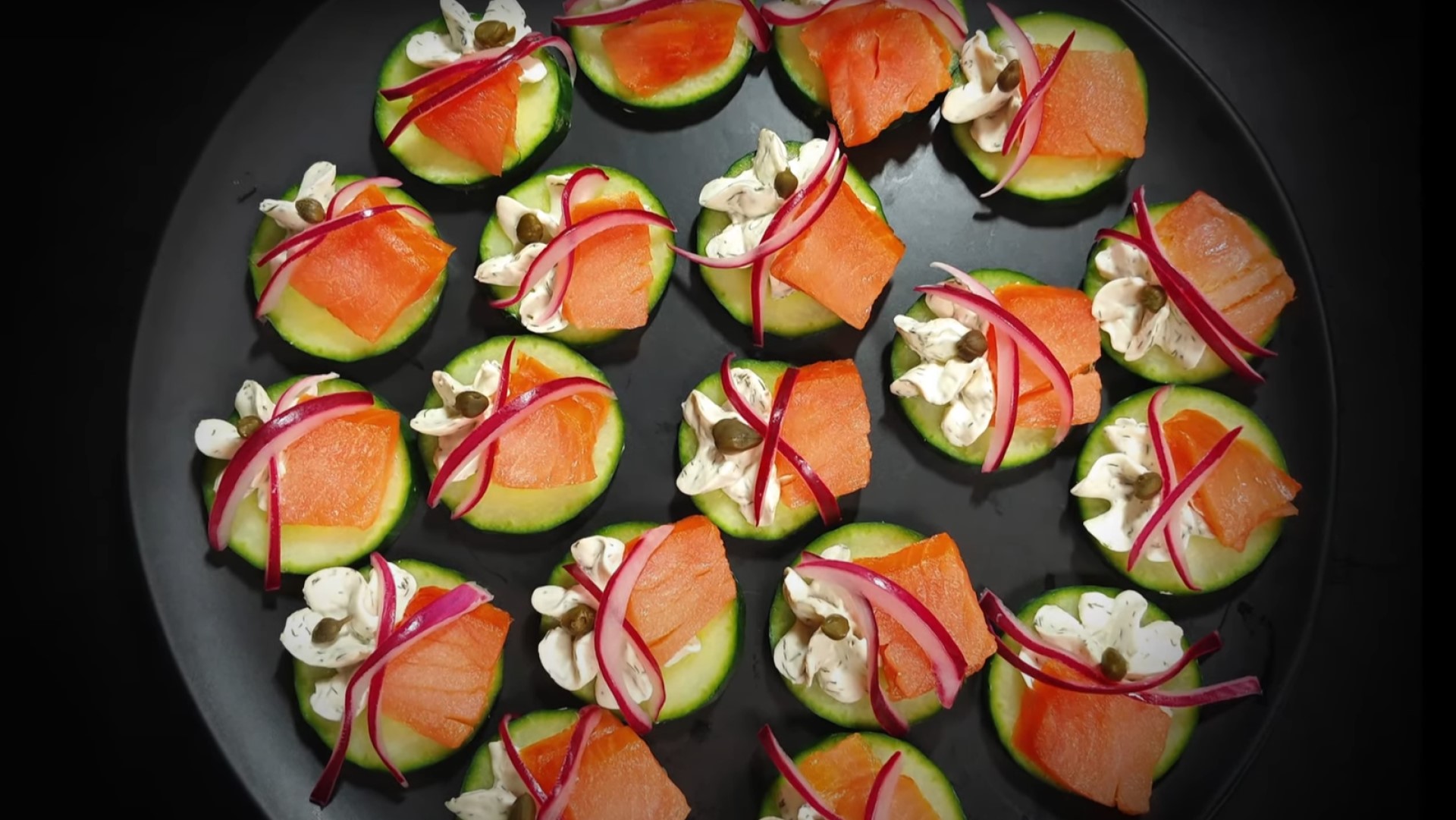 Эффектную праздничную закуску реально сделать всего за пять минут. Вместо бутербродов с маслом и икрой можно приготовить огуречные корзинки с копченым лососем. Гости будут в восторге от такого угощенья.