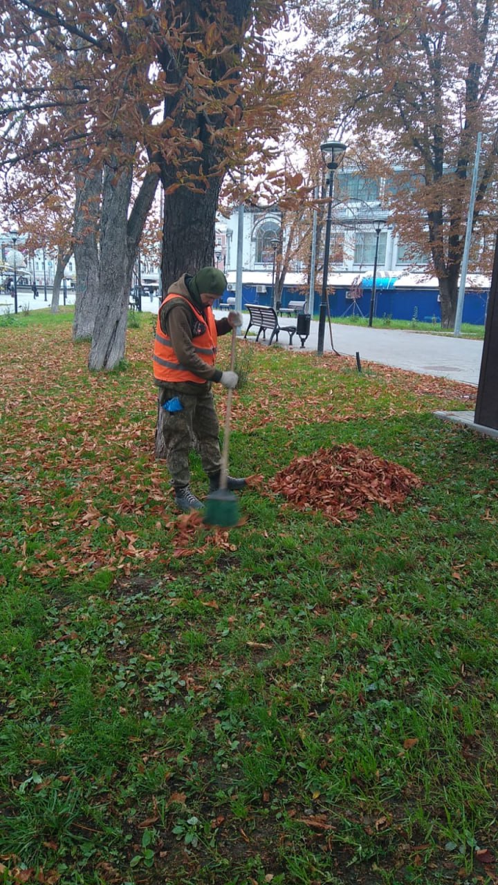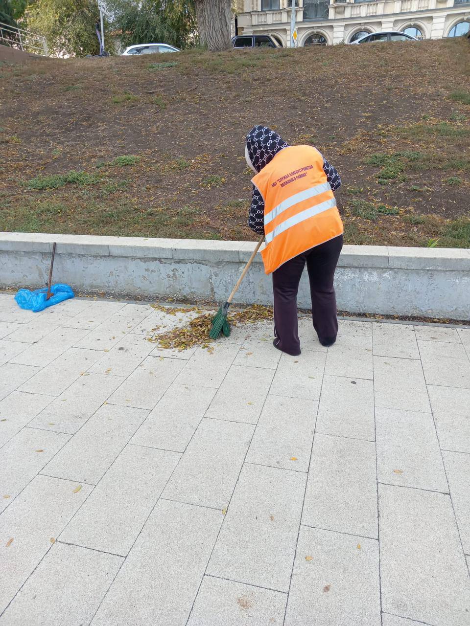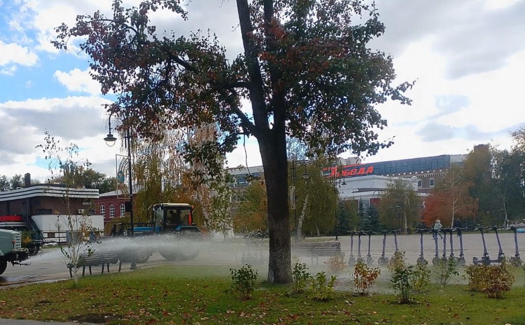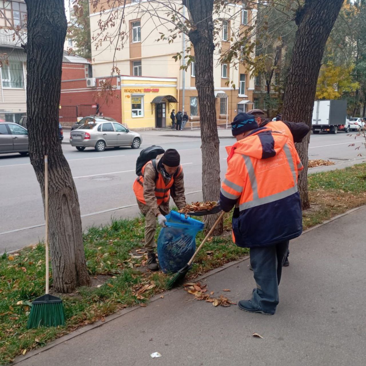 Коммунальные службы выполняют уборку дорожного полотна и пешеходных зон, мойку остановочных павильонов, подготовку цветников к зимнему периоду, обрезку кустарников и деревьев, сбор случайного мусора, опавшей листвы и другие работы