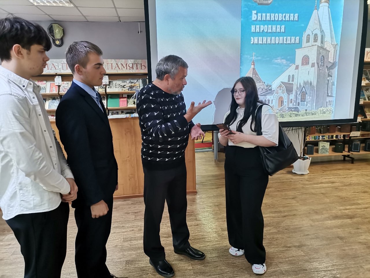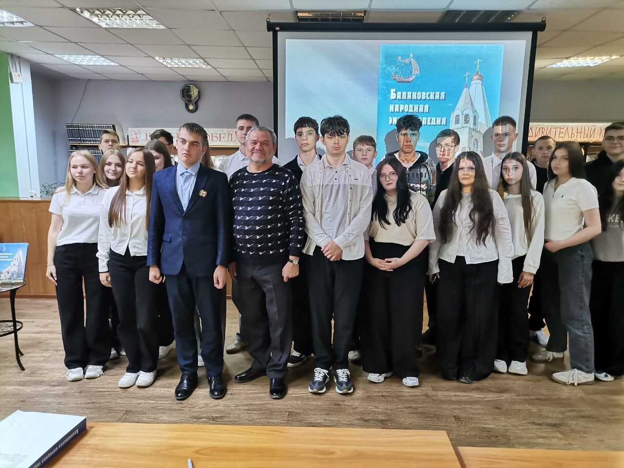 В Балаковской городской центральной библиотеке состоялась встреча учащихся 10А и 10Б классов МАОУ СОШ № 22 с историком и краеведом Юрием Юрьевичем Каргиным. Мероприятие было посвящено презентации второй Балаковской народной энциклопедии.