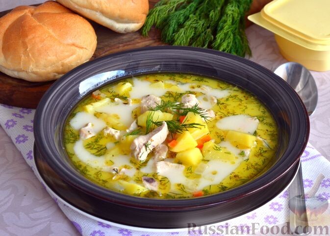- Сырный суп с курицей — идеальное сочетание нежного куриного филе, картофеля и плавленого сыра, создающего особую кремовую текстуру. Быстро готовится и прекрасно подходит для всей семьи.