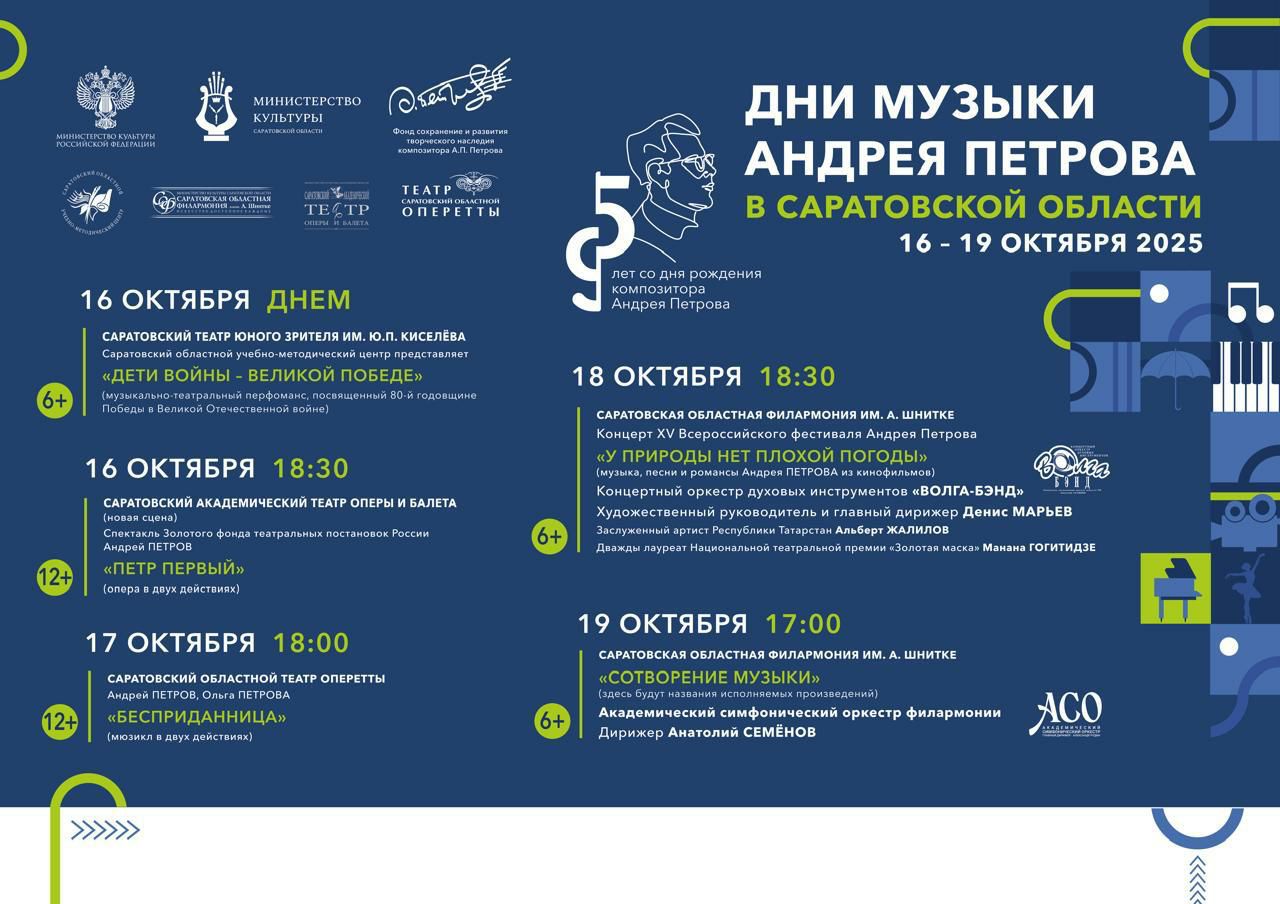 В Саратове дан старт Дням музыки Андрея Петрова. XV Всероссийский фестиваль Андрея Петрова приурочен к 95-летию со дня рождения выдающегося композитора, народного артиста СССР, лауреата государственных премий.