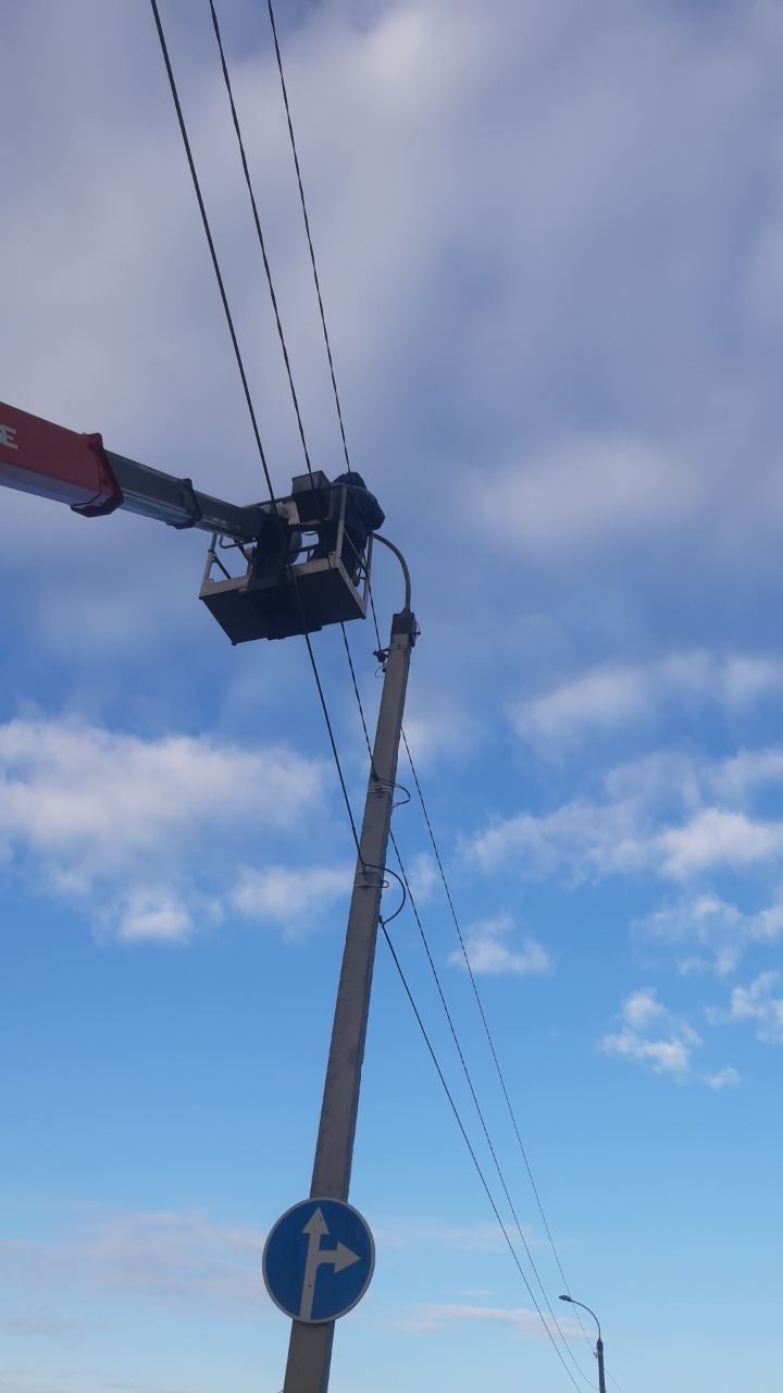 На улицах Вокзальная, Комарова, Строительная проводятся работы по обслуживанию уличного освещения. Также осуществляется сборка транспортных светофоров.