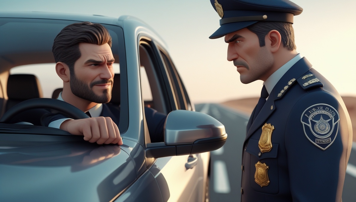 Инспектор, заметив уверенность водителя, задумался и, наконец, принял решение отпустить его без штрафа.