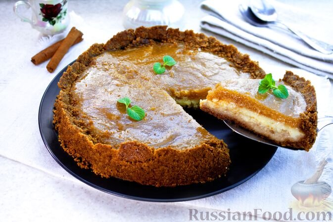 - Тарт с хурмой и пряностями. Основа этого десерта состоит из печенья, смешанного со сливочным маслом. Наполненный йогуртом и яйцами, тарт сверху покрывается сладким соусом из хурмы, приправленным корицей и кардамоном. Такой десерт станет отличным дополнением к вашему чаепитию!