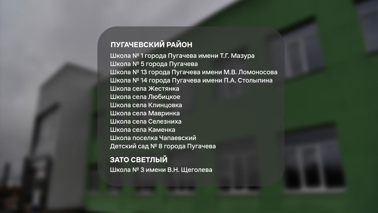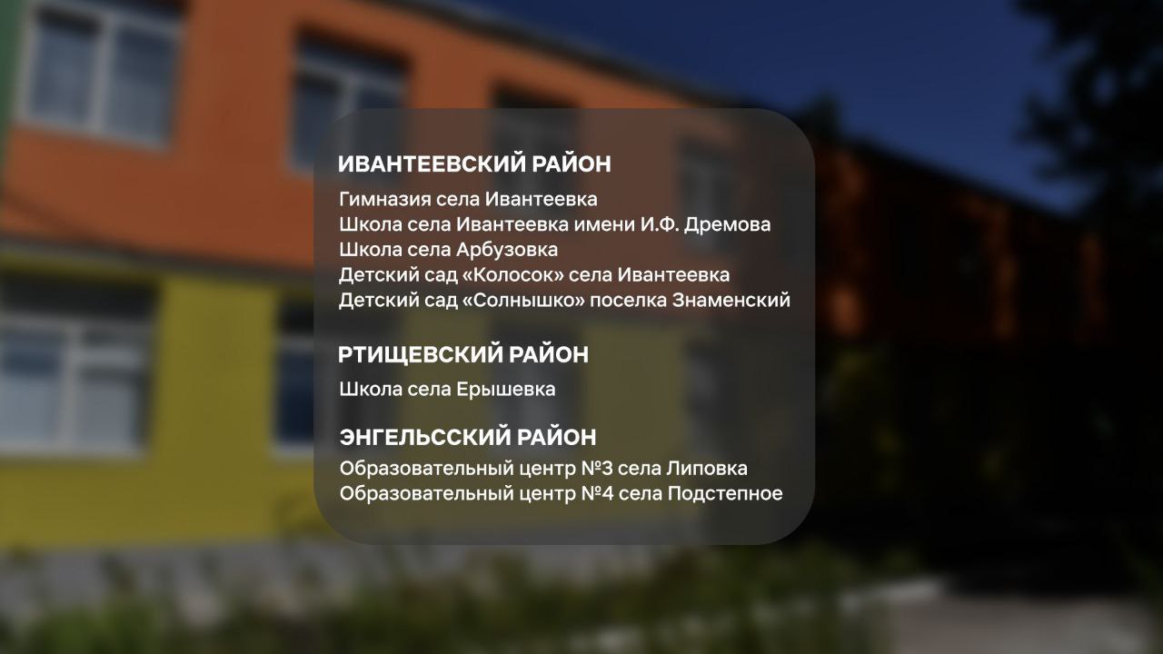 В этом году в проект вошли учреждения 9 районов, Саратова и ЗАТО Светлый. На проведение работ из резервного фонда выделили 14,5 млн рублей. Во всех детских садах и школах работы полностью завершены. В них в общей сложности обучаются более 3 тысяч детей.