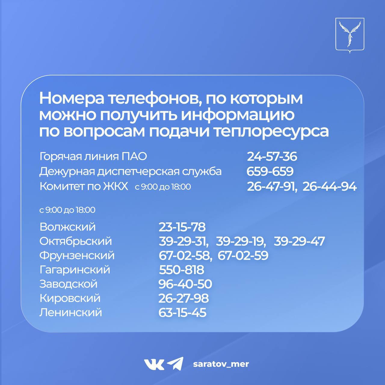 Напоминаем номера телефонов, по которым можно получить информацию по вопросам подачи теплоресурса.