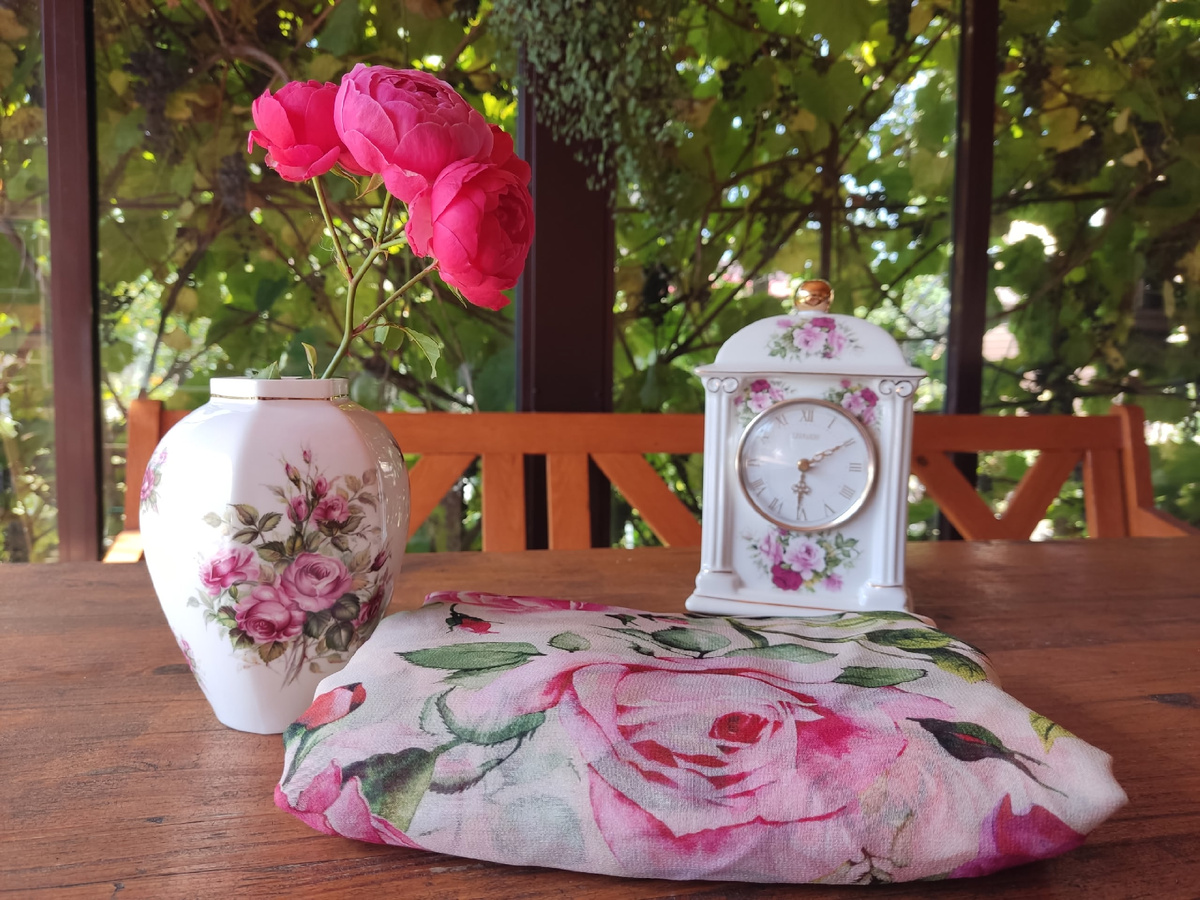 Среди найденных тканей особое место занимает шёлковый шифон с оригинальным розовым принтом. Этот узор когда-то стал заменой простому сарафанчику, который носился во время беременности и стал неотъемлемой частью повседневного гардероба. Прошло время, и теперь, глядя на старые фотографии, где запечатлены лучшие моменты с дочкой, приходит осознание: нужно сшить что-то новое, свежое и стильное.