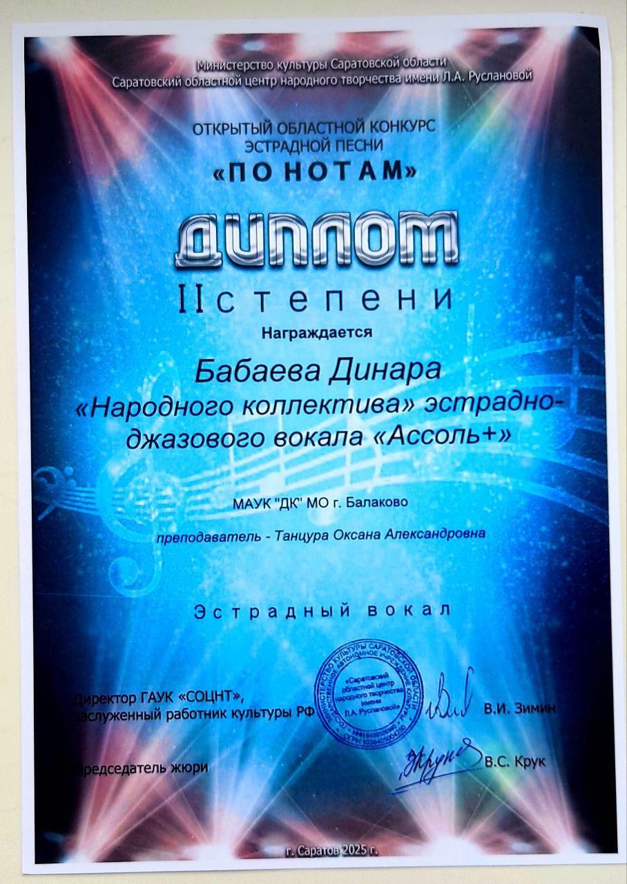 19 октября этого года на базе СОЦНТ им. Руслановой состоялся ежегодный вокальный конкурс от Министерства Культуры Российской Федерации «По нотам». В нем приняли участие более 128 конкурсантов из разных уголков нашей большой области. Воспитанники «Народного коллектива» студии эстрадно-джазового вокала «Ассоль +» завоевали отличные награды!