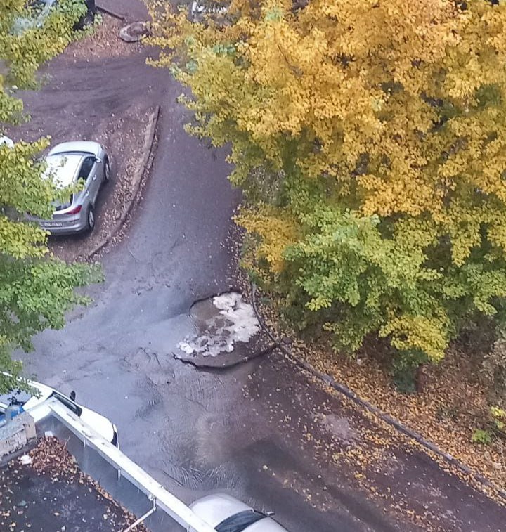 Во дворе одного из домов в Саратове провалился асфальт, сообщают подписчики