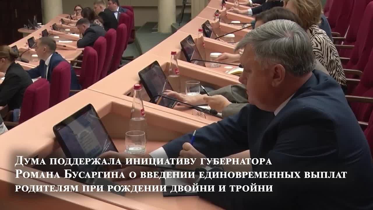Депутаты приняли пять законов, включая инициативу губернатора области Романа Бусаргина о введении единовременных выплат за рождение двойни и тройни.