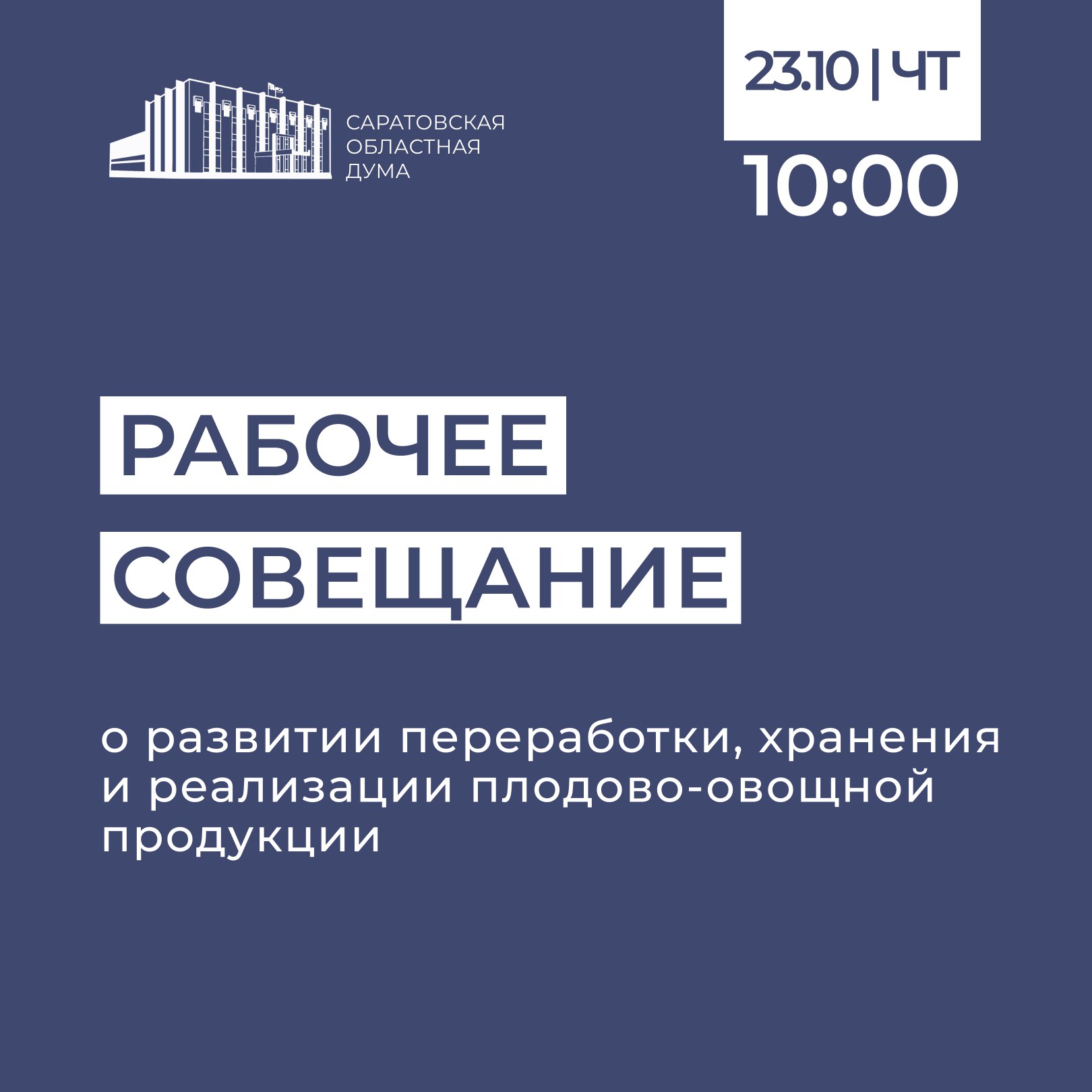 Сегодня, 23 октября, комитет Саратовской областной Думы по аграрным вопросам, земельным отношениям, экологии и природопользованиюпроведет рабочее совещание, посвященное развитию переработки, хранения и реализации плодово-овощной продукции в области.