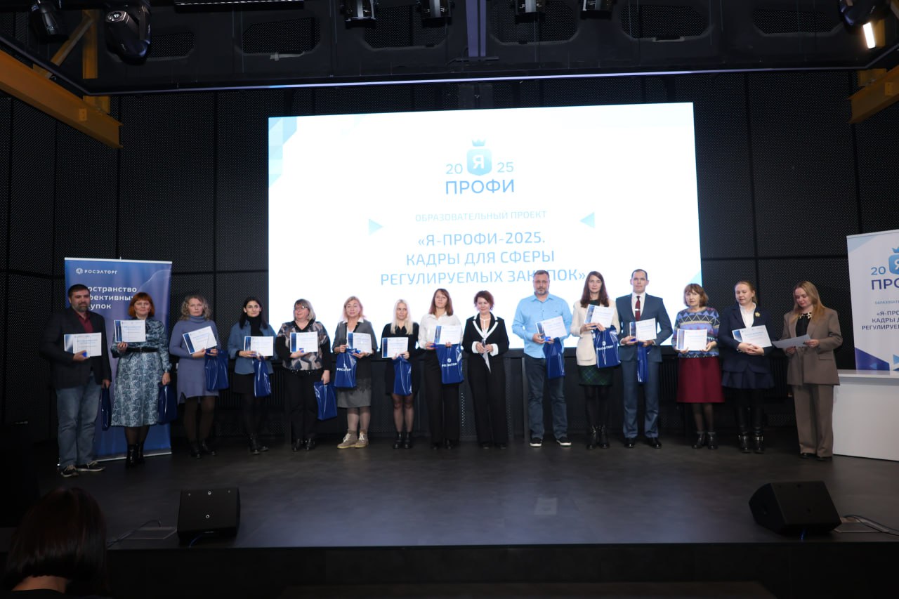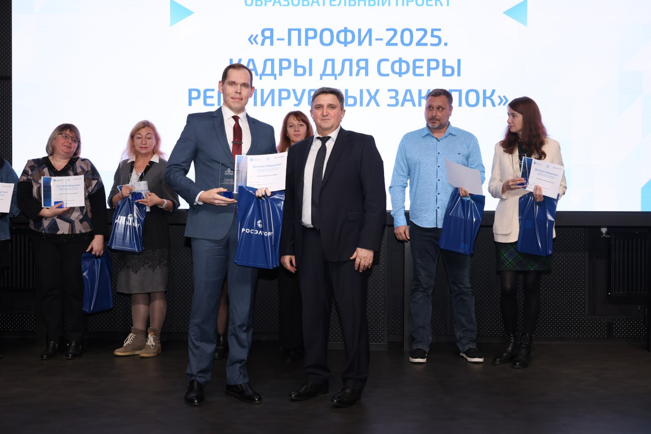 В рамках мероприятия было произведено обсуждение актуальных вопросов применения новых правил национального режима в сфере закупок, были подведены итоги, произведено награждение финалистов и объявлены победители проекта «Я — ПРОФИ-2025. Кадры для сферы регулируемых закупок».