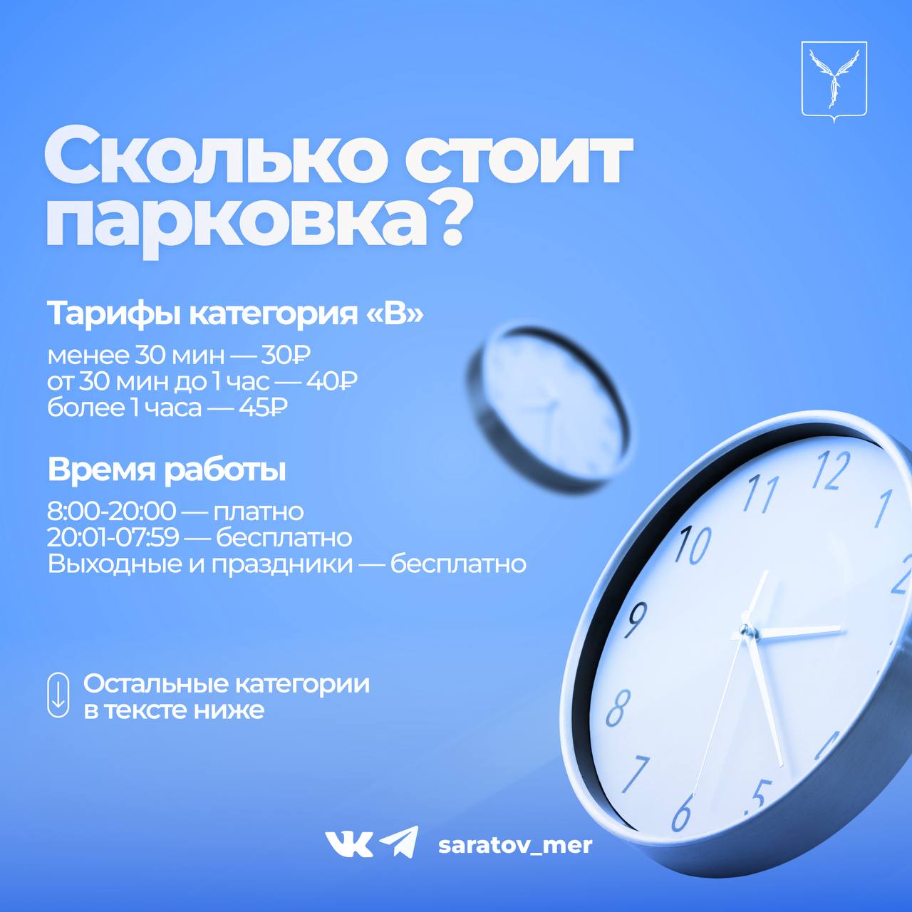 при длительности парковки более 1 часа - 30 рублей;