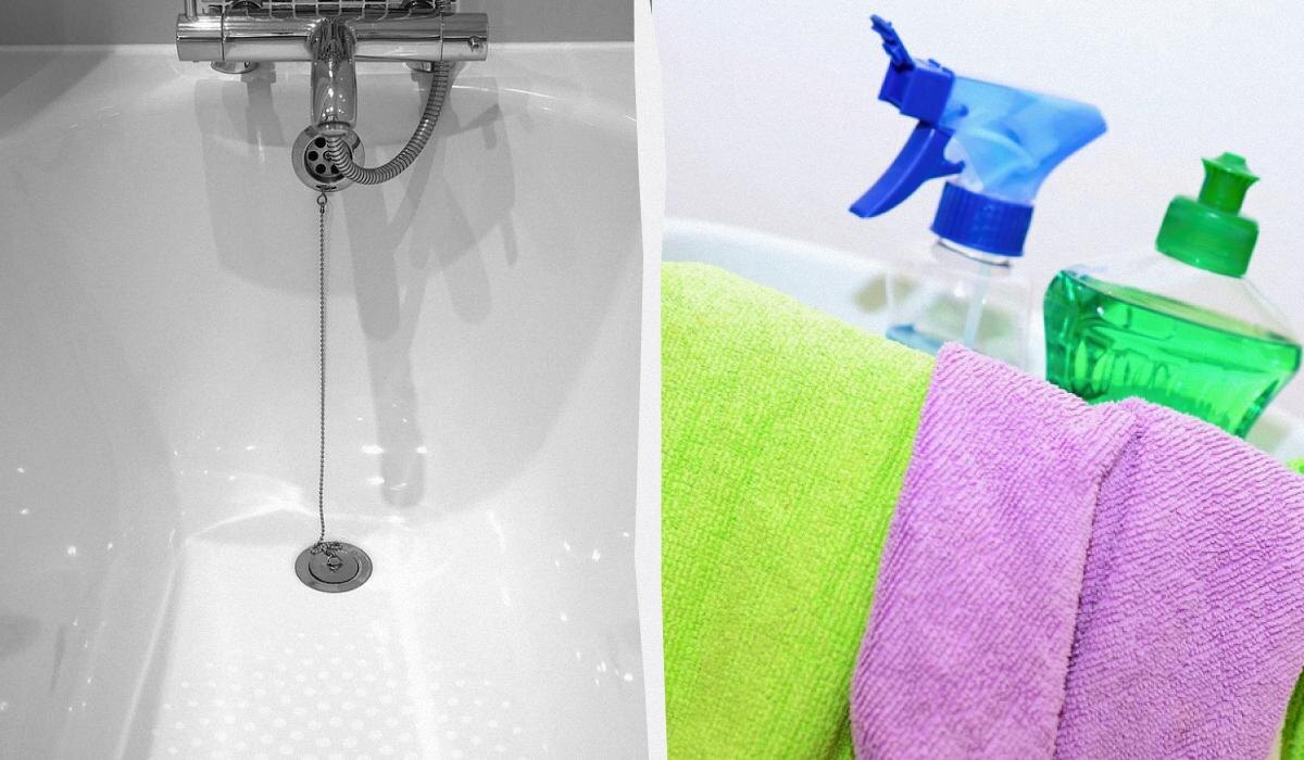 Эти компоненты также просто перемешиваются и сразу же готовы к использованию. Чтобы запускать процесс очистки было удобнее, стоит перелить раствор в пульверизатор. Если на вашей ванне есть участки с особенно стойкой желтизной или ржавчиной, можно нанести раствор на бумажное полотенце и зафиксировать его на проблемной области, чтобы дать средству время на действие. В итоге грязь будет легче удалить с помощью губки.