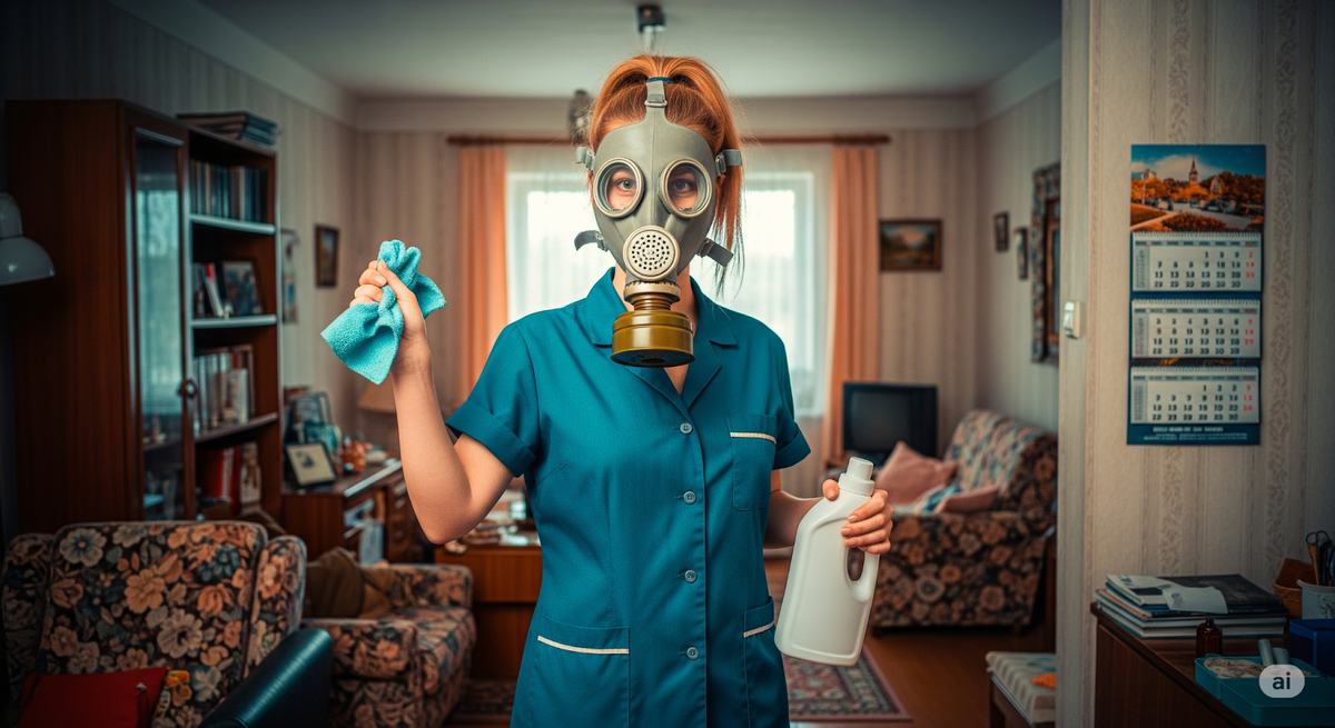 Откуда пришел совет: В условиях нехватки средств для уборки хлорсодержащие препараты стали настоящей находкой. Поскольку их использовали почти для всего — от пола до посуды, они казались идеальным универсальным решением.
