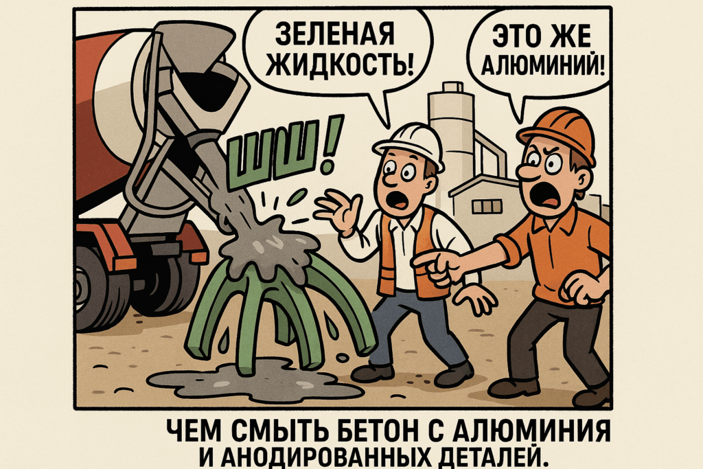 Часто возникает мнение, что чем сильнее кислота, тем легче она справится с бетоном. Однако это заблуждение. Обычные соляная или фосфорная кислоты не только неэффективны, но и могут серьезно повредить алюминий, превращая его в «губку», полной микротрещинами и коррозией. Это может привести к потере блеска и защиты анодированных деталей. Выбор экспертов — составы с ингибированными кислотами, которые эффективно взаимодействуют с бетоном, не нанося вреда самому алюминию.