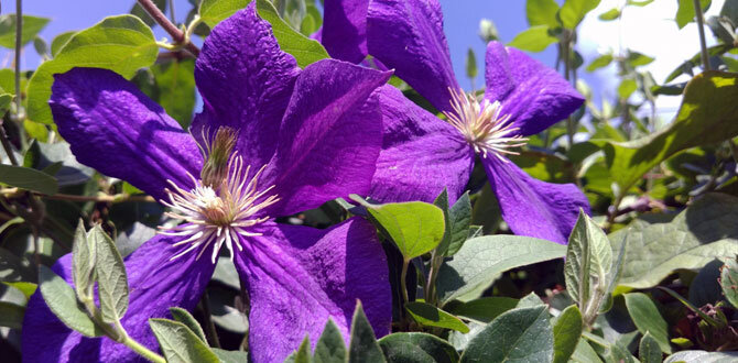 - Вторая группа: клематисы, которые цветут дважды — сначала на побегах прошлого года, а затем на новых. Обильное цветение наблюдается в начале лета, а второе, менее щедрое, происходит летом. Обрезать эти растения можно двумя способами: либо произвольно, оставляя куст на высоте около метра, либо с помощью ступенчатой обрезки, что позволяет сохранять непрерывное цветение.