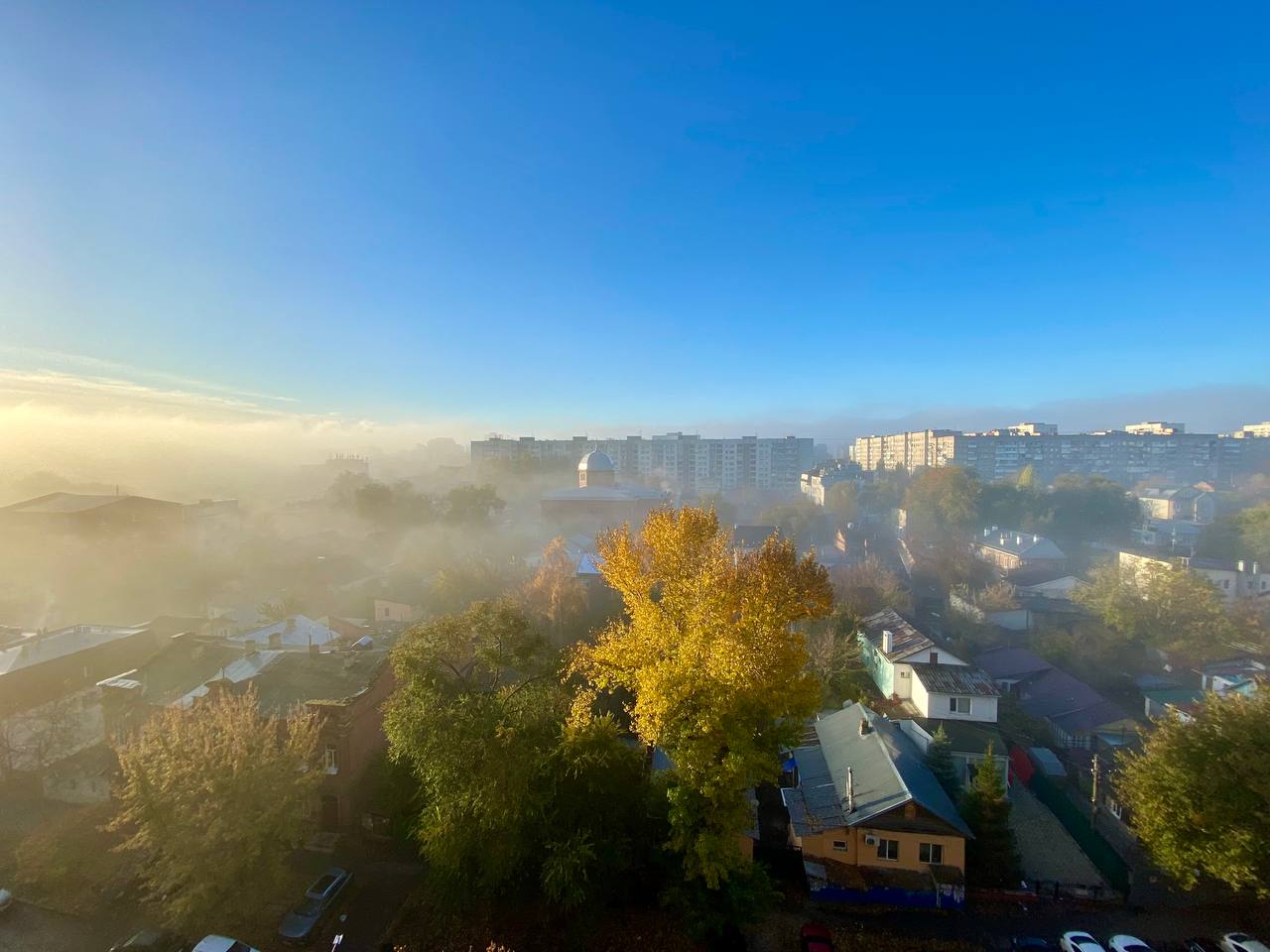 Утром 27 октября на Саратов спустился туман, который наполовину закрыл собой высотные здания. Если вы сейчас за рулем, будьте более внимательны.