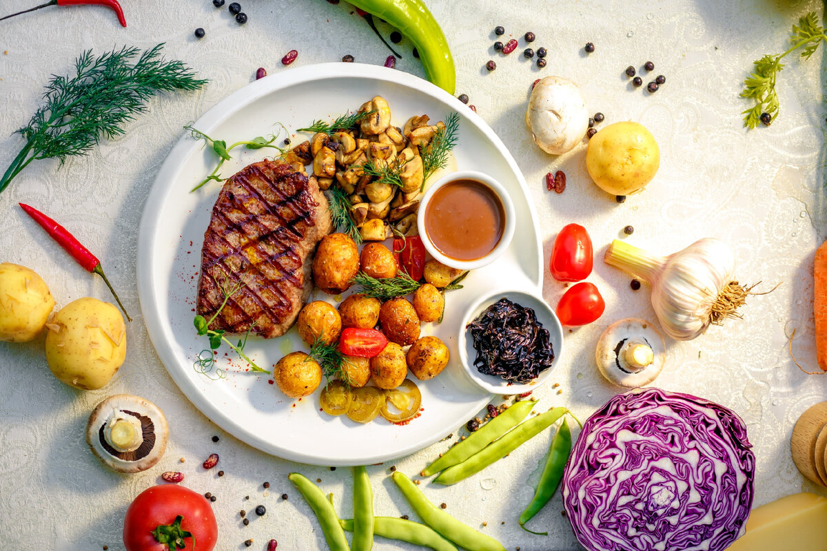3. Стейки нуждаются в подготовке: смажьте их оливковым маслом, поперчите и посолите, затем обжарьте на сковороде до желаемой степени готовности около 4-5 минут с каждой стороны.