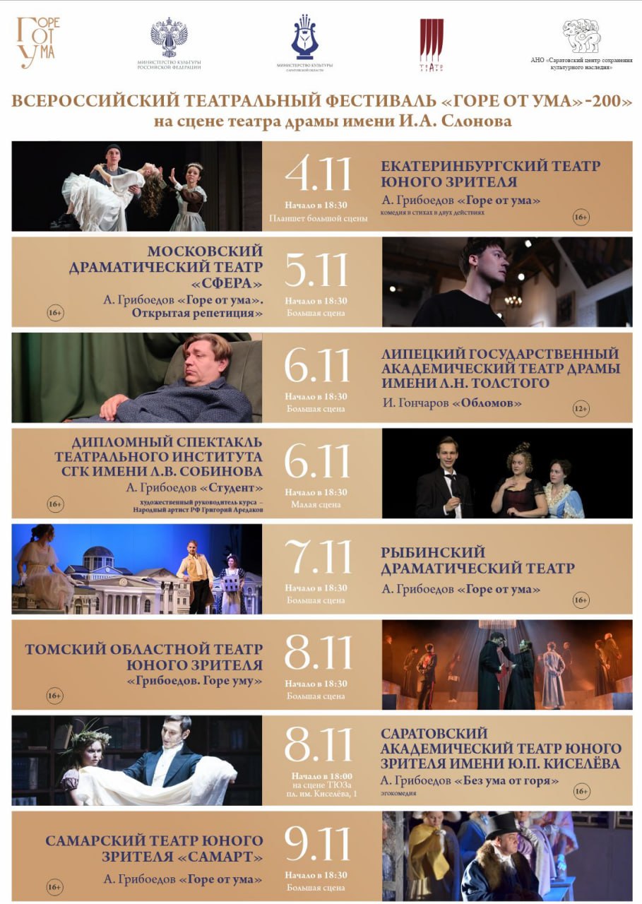 С 4 по 9 ноября в Саратове пройдет Всероссийский театральный фестиваль "Горе от ума" - 200".