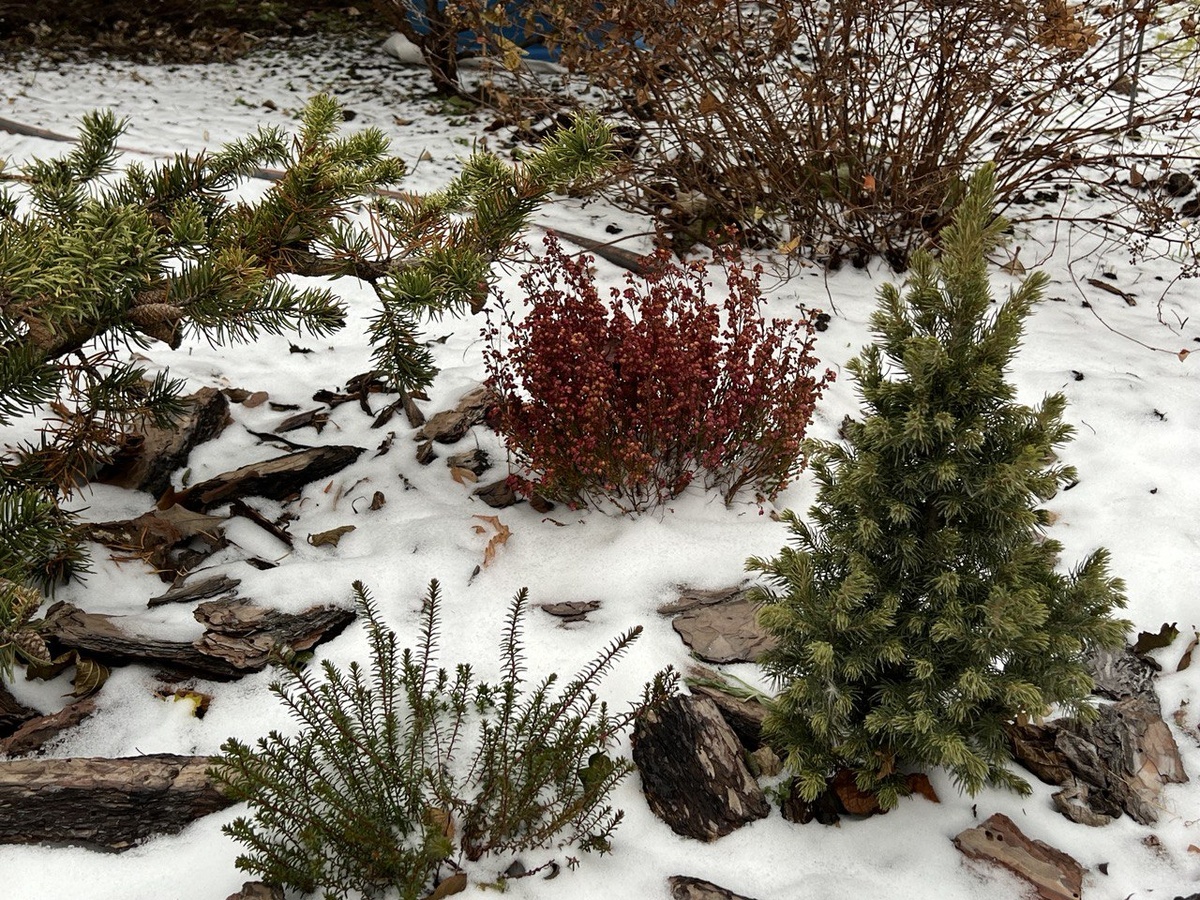 Не стоит забывать и о лиственных кустарниках, которые придают зимнему саду уникальность благодаря своей текстуре, ягодам или необычному цвету коры. Ампельные деревья — это еще один шикарный способ добавить интересные акценты в зимний пейзаж. Даже одно такое дерево может стать настоящей изюминкой.