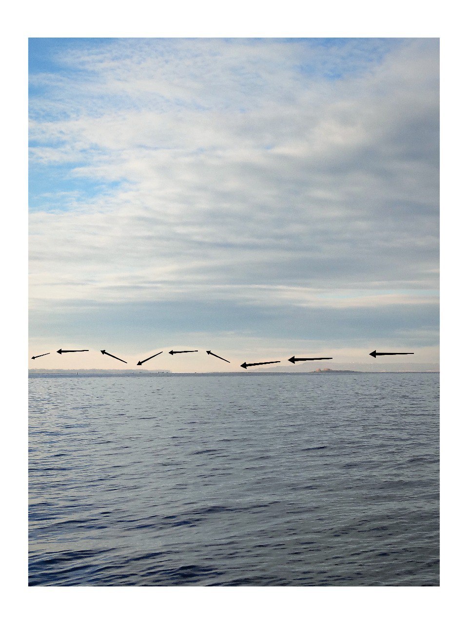 На самом деле это атмосферные волны — они возникают, когда ветер встречает препятствие (в этом случае — холм). Это вынуждает к подъему. После этого происходит падение, что создает колебания в воздухе. Обычно такие волны невидимы, но дым, туман или облака могут их "высветить". Так и получилось сегодня: дым стал своего рода экраном, на котором проявились движения воздуха.