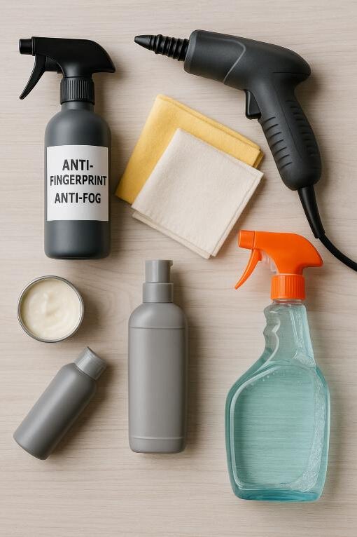 - Используйте анти-отпечатковые средства. Эти продукты, содержащие полимеры или силиконы, помогут защитить ваши стекла от грязи и отпечатков пальцев. Применение средств с пометкой Anti-Fog также способствует созданию гладкой поверхности.