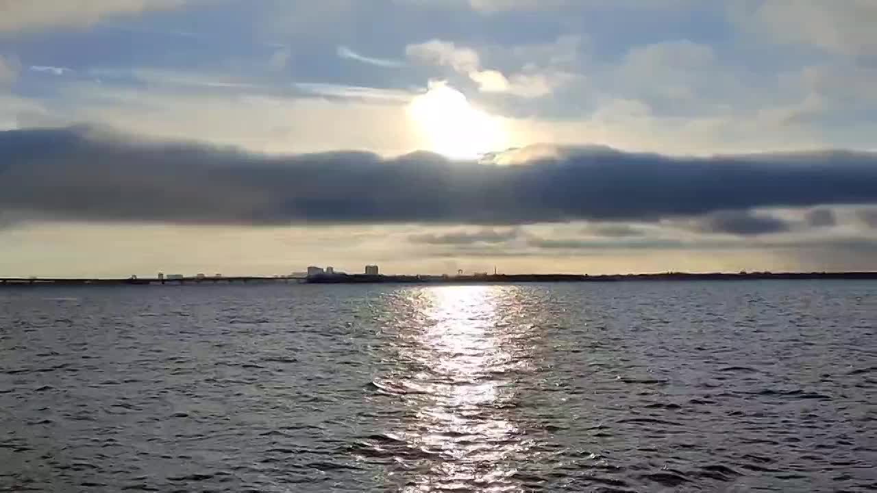 Сегодня, 1 ноября, над Волгой вдоль береговой линии вытянулись рулонные облака. Они представляют собой длинные, горизонтально ориентированные валы с четко очерченными краями.