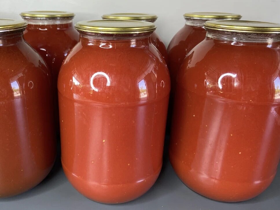 - Томатный соус. Это универсальный ингредиент, который заменит готовую томатную пасту в различных блюдах. Сделать его несложно: достаточно переработать помидоры и заготовить в банках для дальнейшего использования.