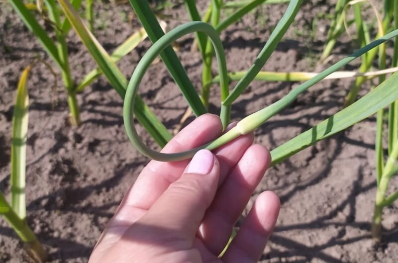 Огородники обычно обрывают стрелки чеснока, чтобы направить все силы растения на развитие луковиц. Тем не менее, оставляя 2-3 стрелки на грядке, можно получить несколько дополнительных преимуществ: