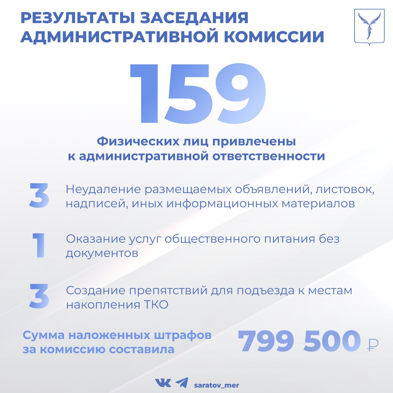 Состоялось очередное заседание административной комиссии муниципального образования «Город Саратов», в ходе которого было рассмотрено 209 дел