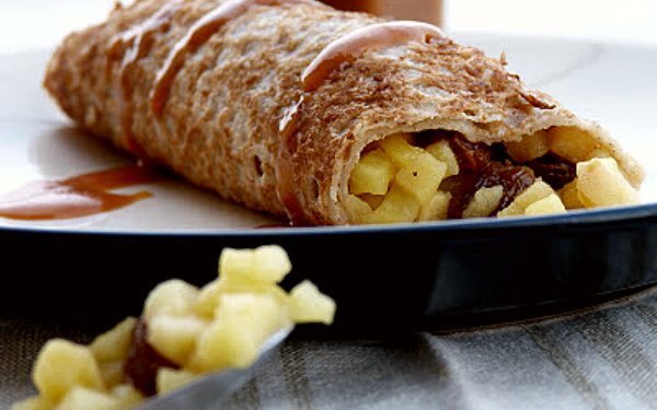 Идеальным дополнением к гречневым блинчикам станет яблочная начинка с изюмом, которая подчеркнет их вкус. Ингредиенты следующие: