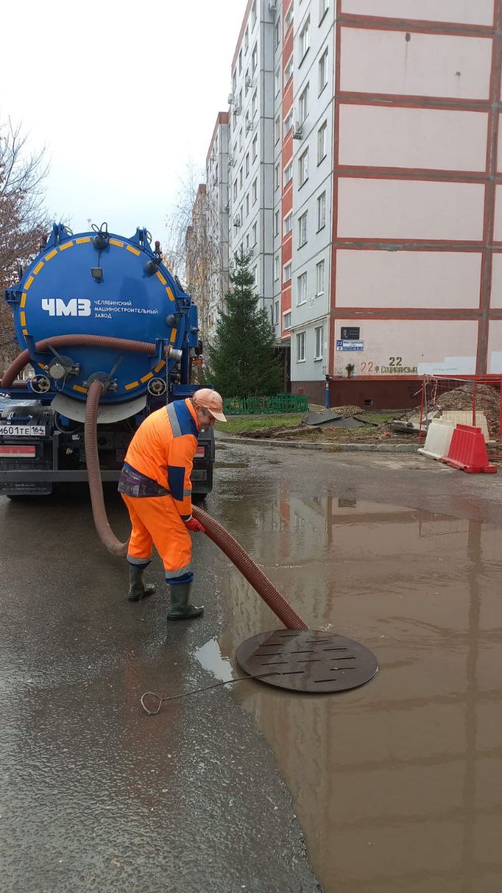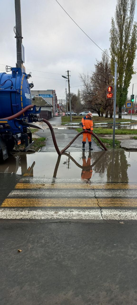 Сегодня с самого утра рабочие приступили к откачке воды после дождя.