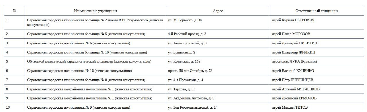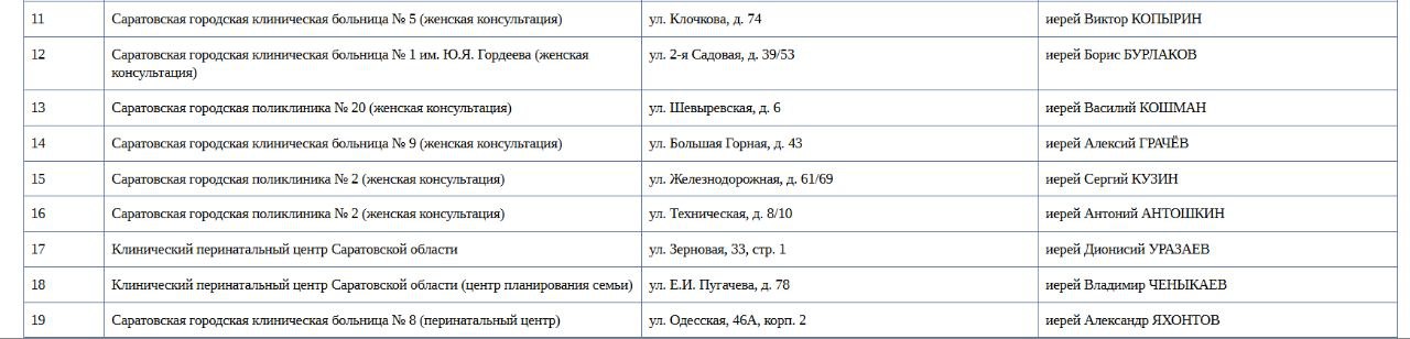 Миссионерский проект митрополита Саратовского и Вольского Игнатия стартует в 19 медучреждениях. Священнослужители будут заниматься "духовным окормлением пациентов и медицинского персонала женских консультаций".