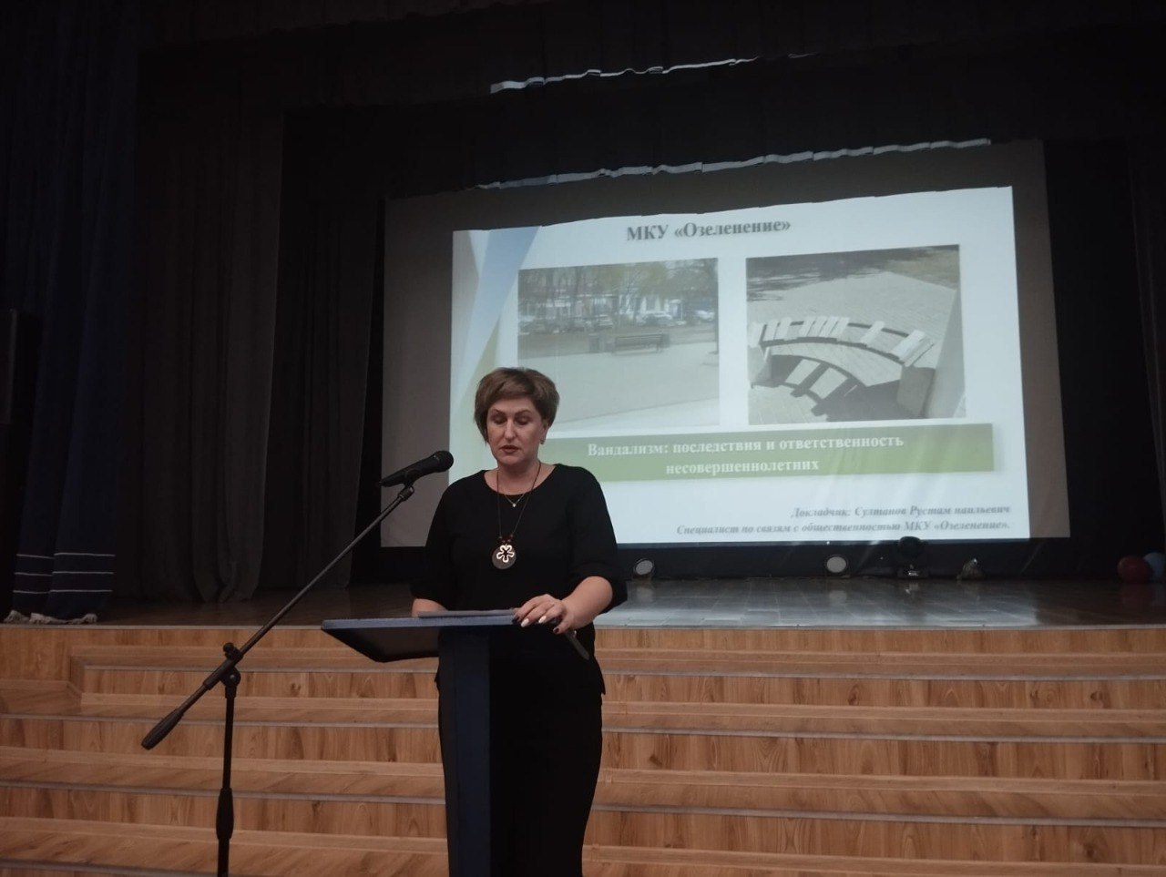 Познавательная лекция «Вандализм: понятие и виды» прошла в школе №1. В мероприятии приняли участие представители муниципального предприятия «Озеленение» и комиссии по делам несовершеннолетних администрации района.