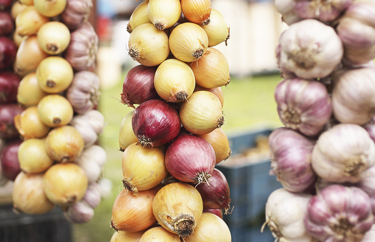 Вдохновляющие и оригинальные гирлянды, состоящие из однотонных луковиц, выглядят очень стильно. Чтобы добавить немного разнообразия, можно комбинировать лук с чесноком — такая комбо не только интереснее, но и гарантирует наличие самых популярных овощей под рукой. Кроме того, стоит создать несколько различных кос, чтобы использовать их поочередно и наслаждаться каждым подключением до нового урожая.