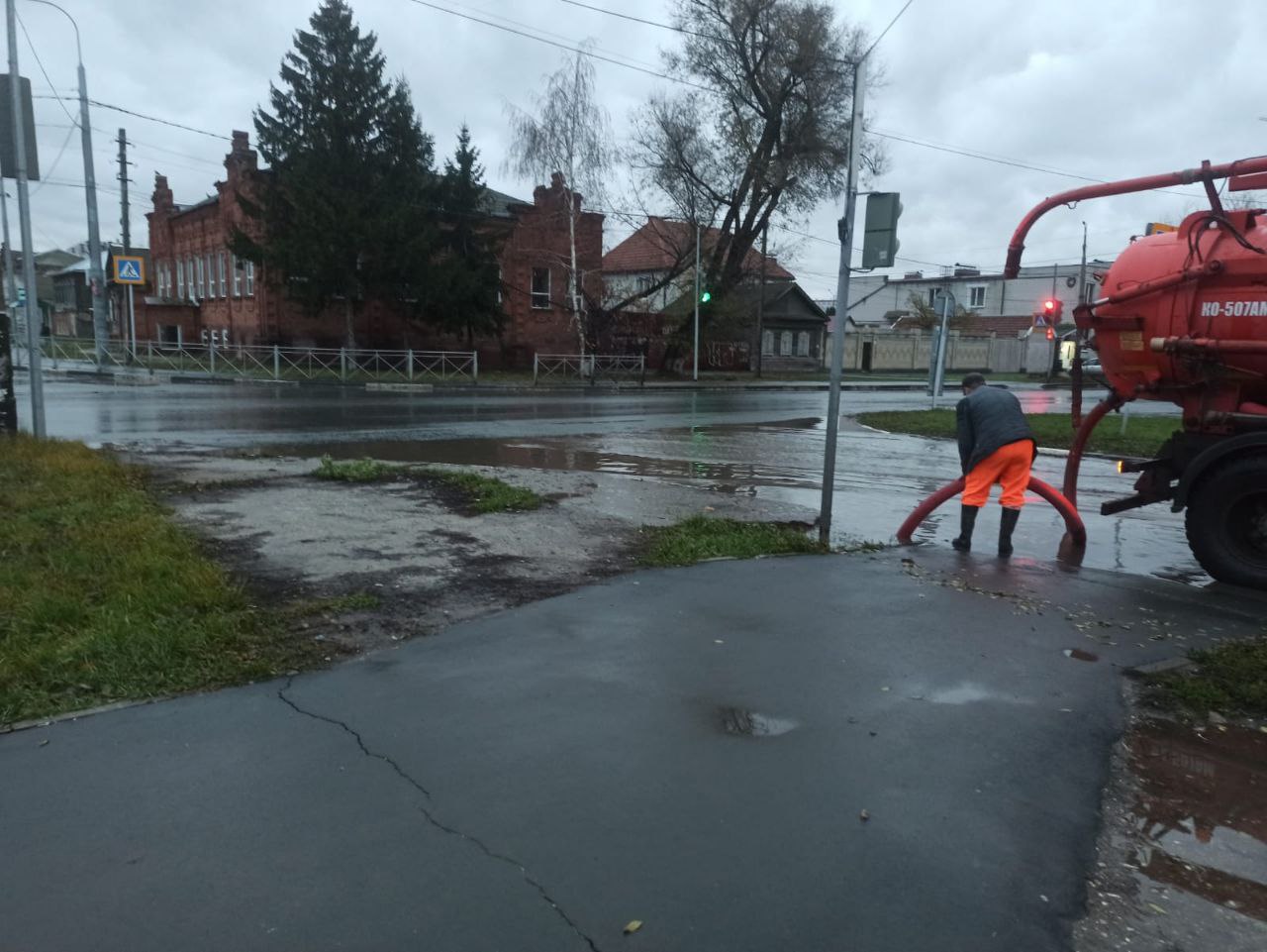 Сотрудники «Комбината благоустройства» откачивают воду с затопленных участков дорог и дворовых территорий