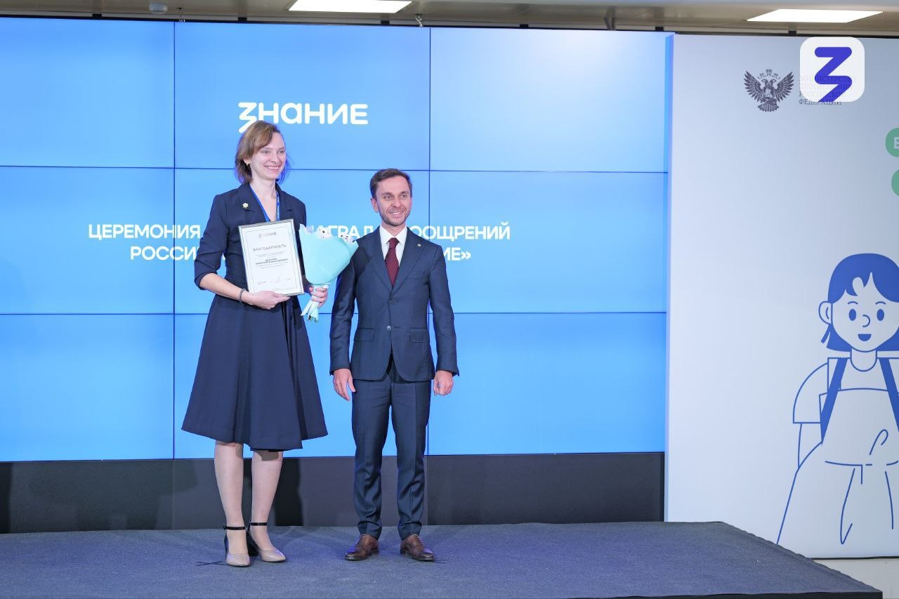 Анастасия Александровна также является руководителем родительского проекта-победителя конкурса Российского общества «Знание», за который была отмечена благодарственным письмом за эффективную работу по продвижению идей и поддержке просветительских проектов РО "Знание".