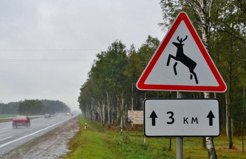 Следить за окрестностями, особенно в ночное время и сумерки, а также там, где дорога проходит через лесистую местность.