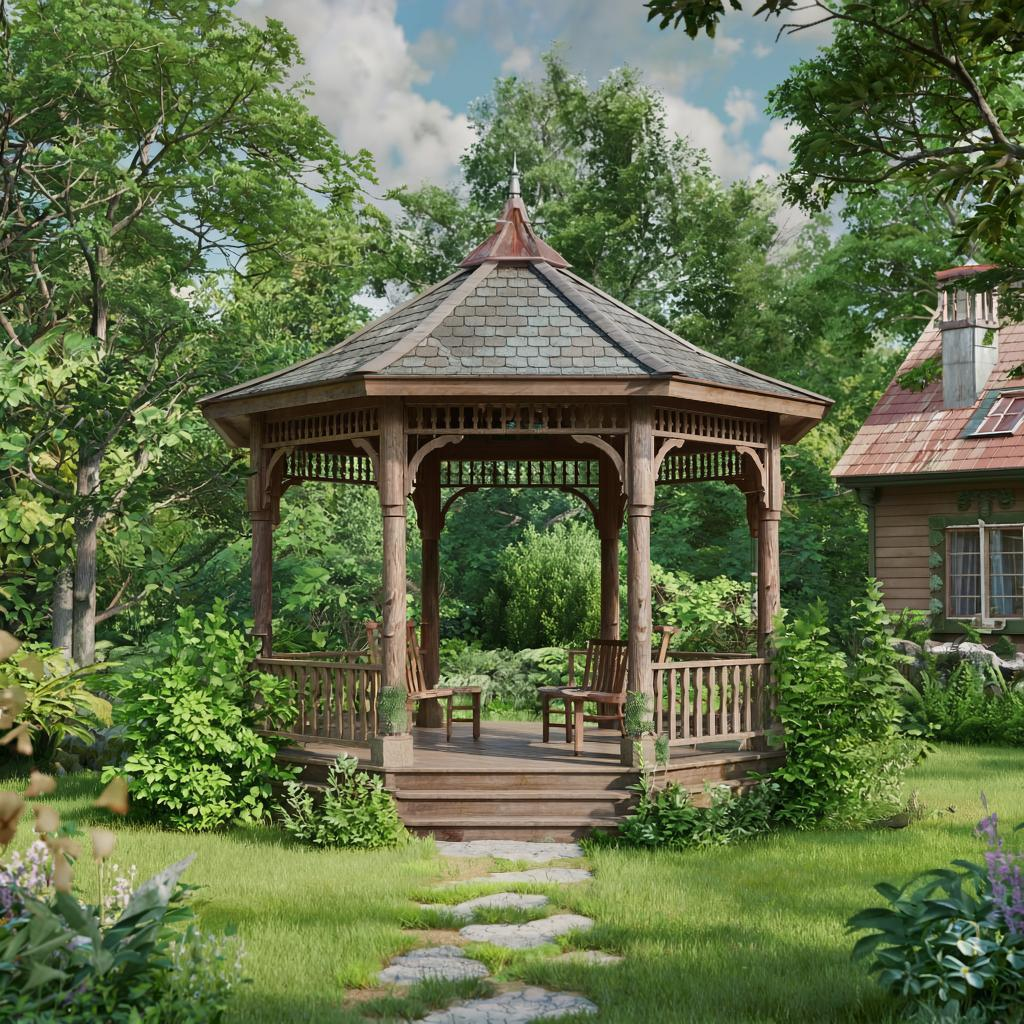 Для тех, кто мечтает о более капитальном сооружении, стоит рассмотреть строительство беседки. Это проект требует больше усилий, но результат станет важной частью загородного отдыха на многие годы. Беседки могут быть открытыми, полузакрытыми или полностью закрытыми с остеклением. Новичкам подойдут более простые конструкции квадратной или шестигранной формы.