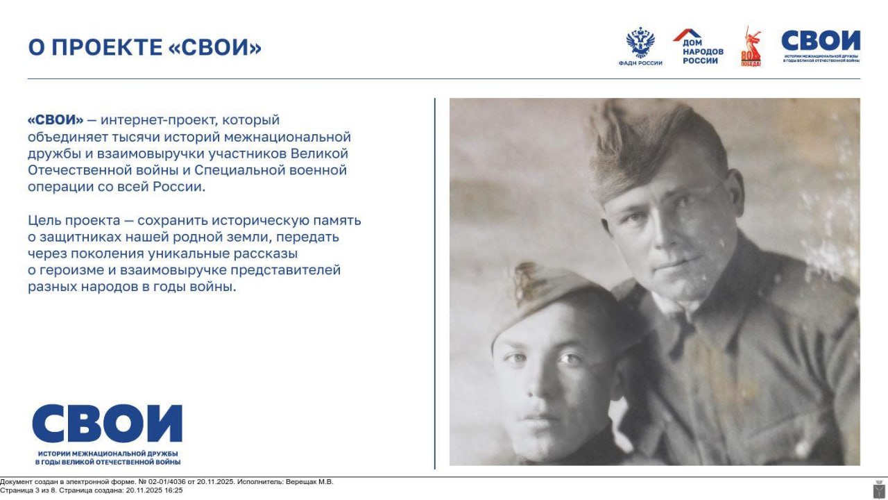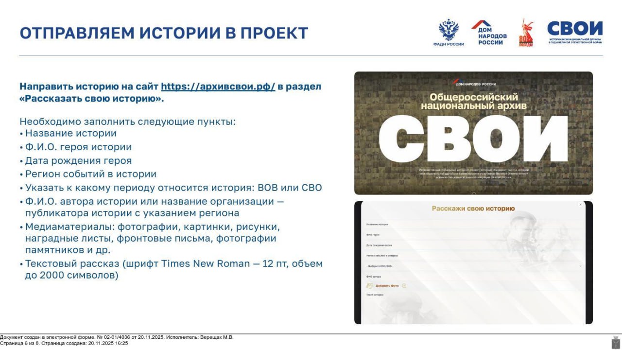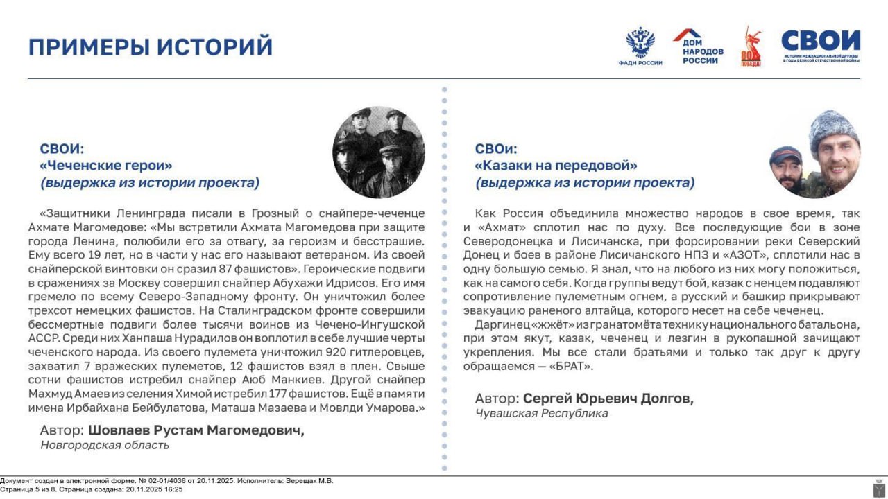 Направить истории о межнациональной дружбе в годы Великой Отечественной войны и в период специальной военной операции возможно через сайт https://архивсвои.рф/.